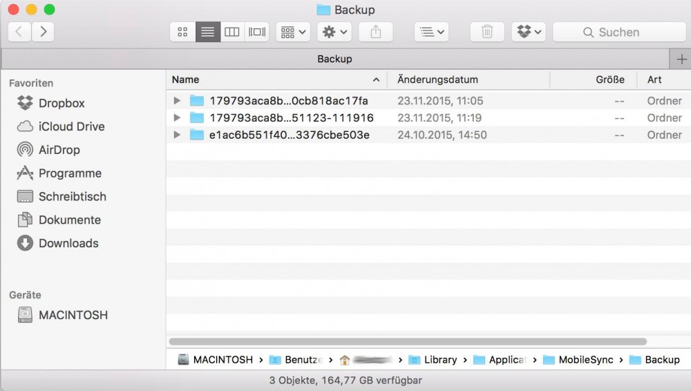 - All Mac Users will find the Backup folder within the Home Directory: "~/Library/Application Support/MobileSync/Backup/" (see Screenshot).