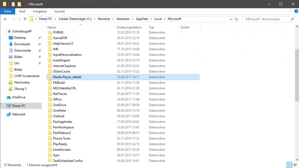 - Here you will find the folder "Media Player". Rename it in "Media Player is defective," and restart the Media Player.