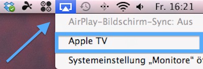 - If Apple TV is connected to the same Wi-Fi network as your iMac, now appears in the taskbar an icon for Apple TV (see picture).