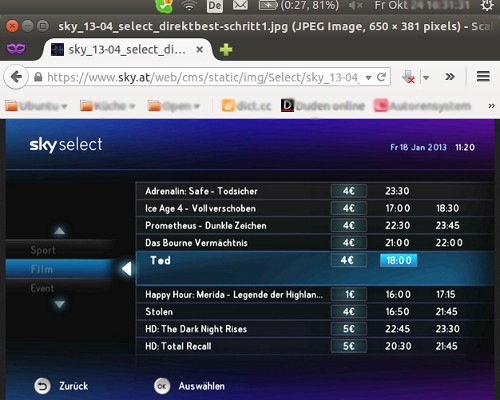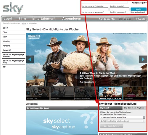 - Press the Select button on your Sky remote control. There you will find the Sky-Select-Overview.