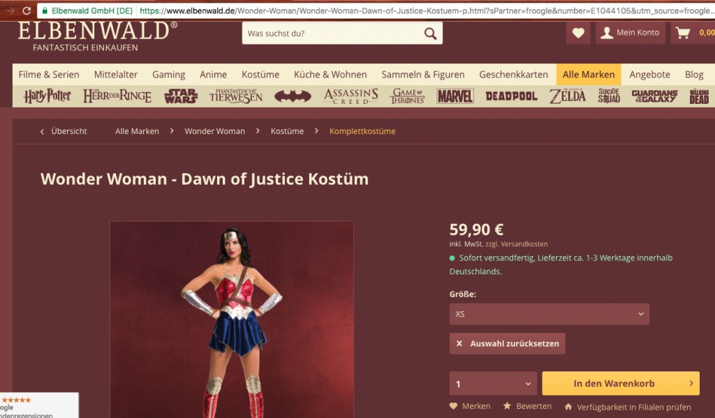 - In the case of the Elbe forest, you get a Wonder Woman costume for 59.90 euros.