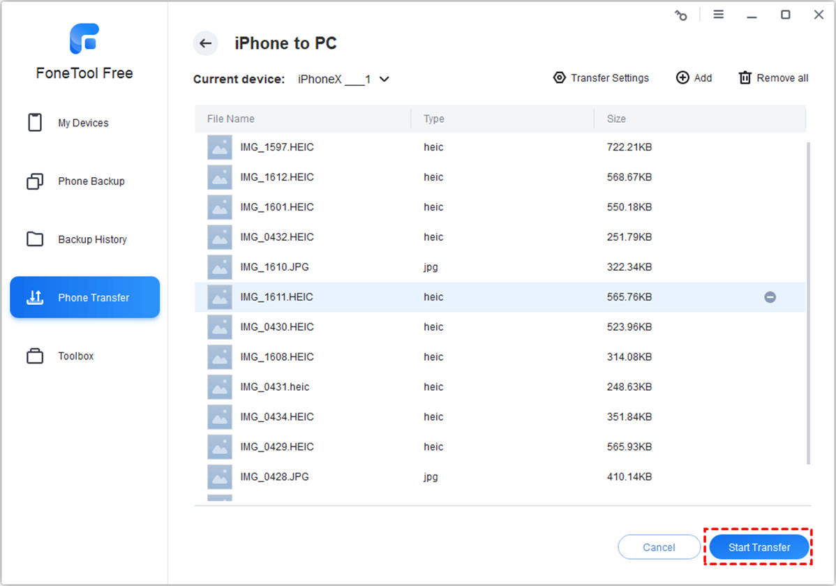 FoneTool supports you to transfer different types of files from iPhone to Windows PC, here we take transfer photos as an example, you can check the steps below: