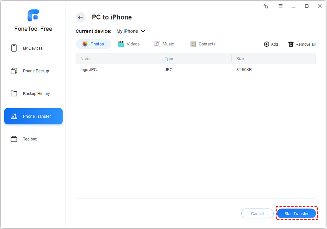 With the help of FoneTool, the process of exchanging data between iPhone and Windows PC becomes simple. It just requires only a few simple clicks, now let’s have a look!