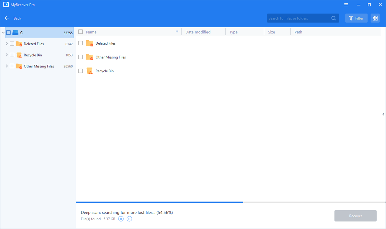 - Deep Scan Capability: MyRecover's Deep Scan mode utilizes a comprehensive scanning approach to find more deleted and lost files on your storage device.