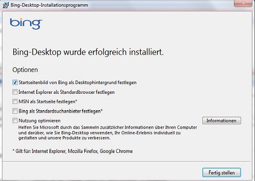 With the Tool "Bing Desktop" to integrate not only a search box in the Windows Desktop, but you can also use the background images from Bing to your Desktop, to assume.