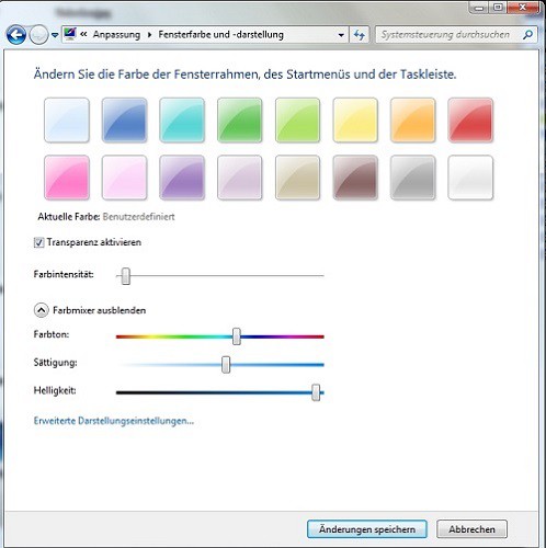 - Now you can change the window color and appearance. To do this, select either one of the suggested colors, or you can create with the "color mixer" a unique color.