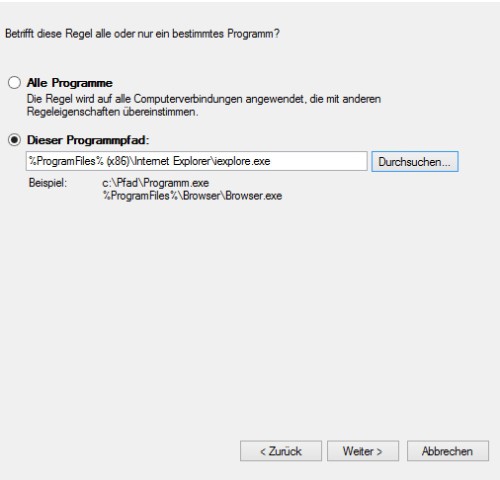 - Enter the path to the program that you want to block. To do this, click on "Browse..." and select the appropriate. EXE file. Confirm with "Next".