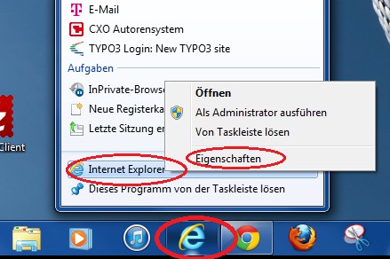 - Click with the right mouse button on the Internet Explorer Icon in the task bar.