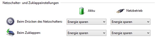 - Now you can decide in the area of "power button and lid settings", whether you are operating in "battery, and/or "mains operation" the Laptop when you close in the resting state want to put.