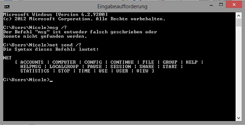 Windows 8 and Windows 10: No Messaging via the CMD console