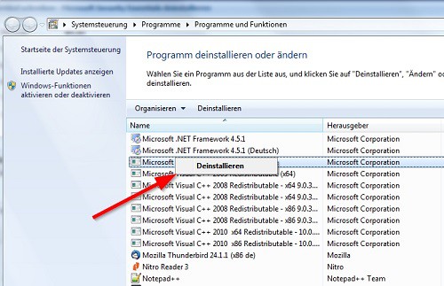 - Select the entry with a right-click. Then, the Option "Uninstall" will appear. You click on it.