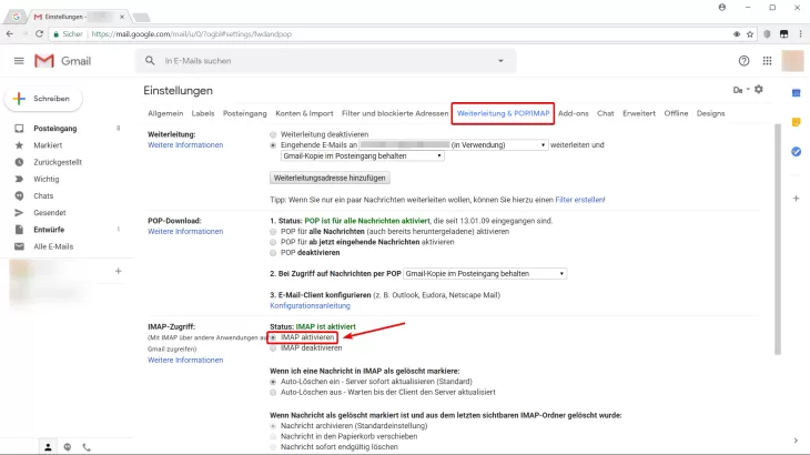 - On the new page, click the "Forwarding & POP/IMAP" tab and check the "Enable IMAP" option, which is about halfway down.