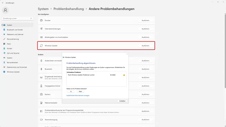 - Windows 11: Call Start > Settings > System > Problem treatment> other problem treatments . To the right of Windows Update Click on the button .