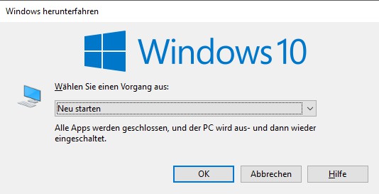 - The second way is on all versions of Windows is feasible. You go for it on the Desktop. Press and hold at the same time the keys [Alt] and [F4], you will also see a menu. Here, select the Option "restart".