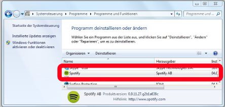 - In the area of "programs" click "uninstall a program" and then select in the menu "uninstall or change a program" the music-Streaming service Spotify.