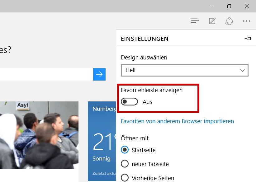 In order to the favorites bar, not directly at the Start need, you can select the home page in Microsoft Edge change.