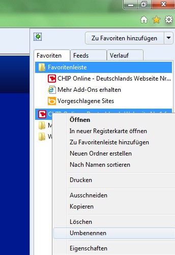 - If you want to delete a favorite or rename, click the right mouse button. In the dropdown you can rename him"", "delete" or to him "add to favorites".