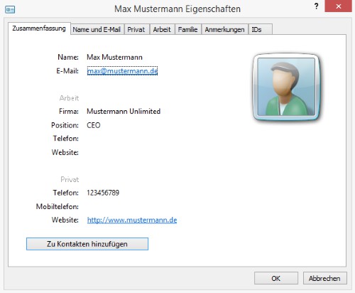 A VCF file contains information about one Person at a time. It serves as a digital business card. The sender may give the VCF file numerous information about yourself, Name and e-Mail address, however.