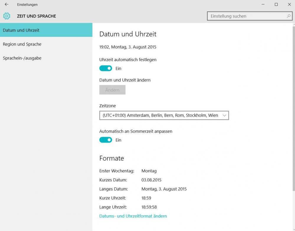 - Finally, under "time zone" your personal time zone. For Germany, the "UTC+01:00".