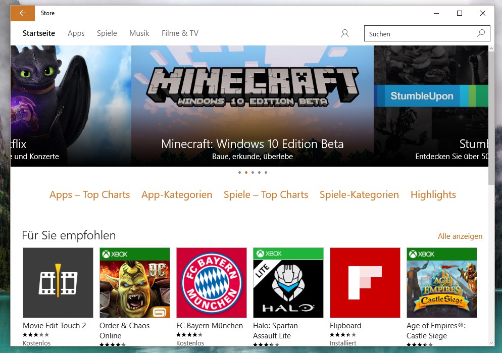 Away from Apps Microsoft offers in the Windows Store, movies, series and music.