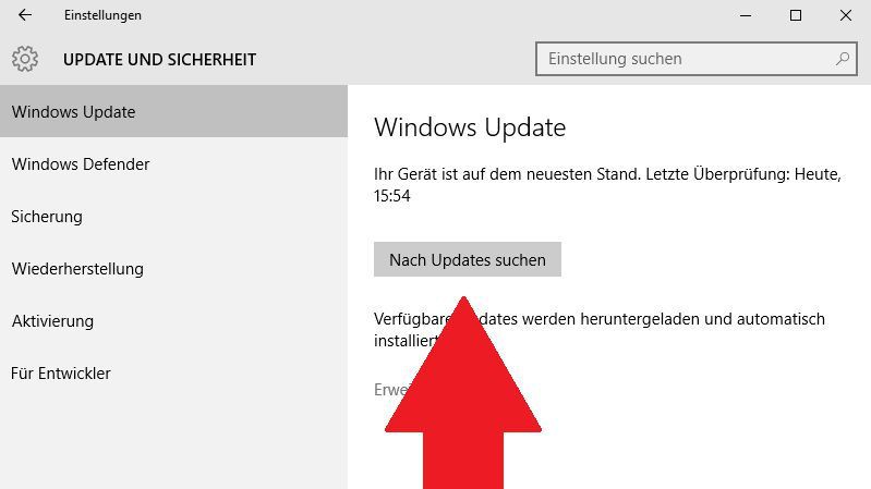 - Then click on the Button "search for Updates" if Windows has not done this automatically.