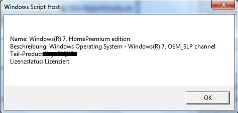 - After about 3 seconds, a window appears where you can view, and you in addition to your Windows Version, the current license status (see image).
