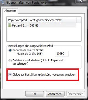 - Now when you disable an entry "dialog box to confirm the deletion process" hook and click "OK".