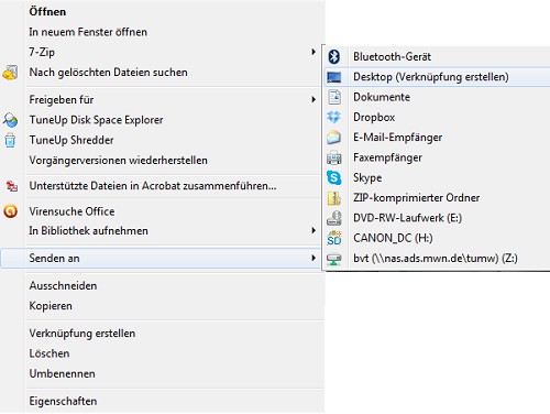 - Click with the right mouse button on the folder and select "Send to" easy "Desktop (create Link)".