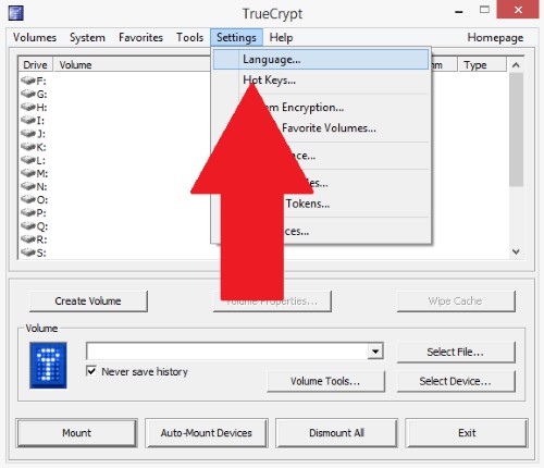 TrueCrypt: change language