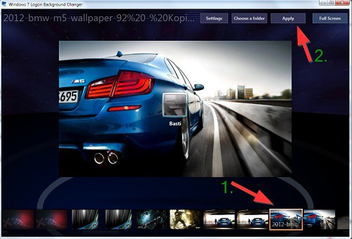 - Select the top button "Choose a folder" and click on the folder where your new image for the login screen is located.