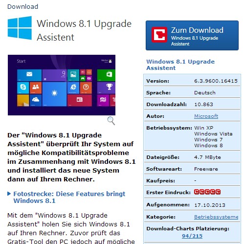 - Click on the "Continue" Button, the download of the Upgrade. Since Windows 8.1 is several gigabytes in size, the Download can take between 30 minutes and 3 hours.