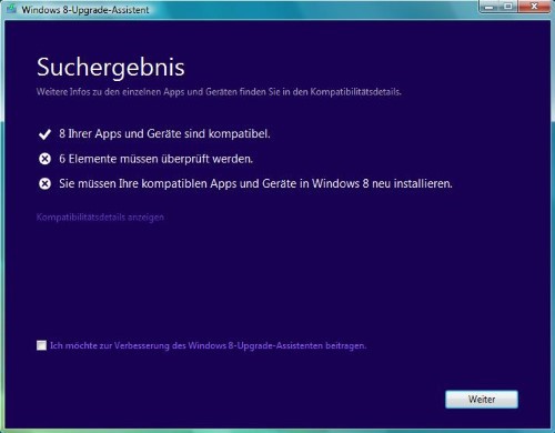 - Start the downloaded EXE-file, it appears briefly on the words "Windows 8". Then a short compatibility test.