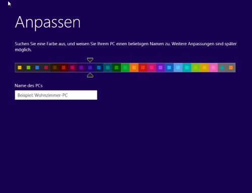 - The Upgrade was completed successfully, then you are in the setup of Windows 8.1. Here you can personalize the Computer now, and your first user account you create.