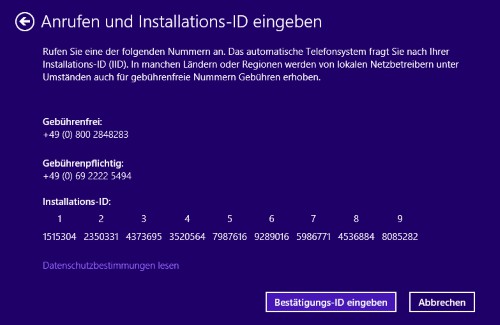 Windows 8: activation over the phone