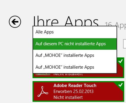 - Select in the left-hand of the two upper selection menu the Filter "On this PC Apps not installed".