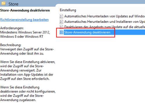 - Click now to the path "computer configuration/Administrative templates/Windows components/Store".
