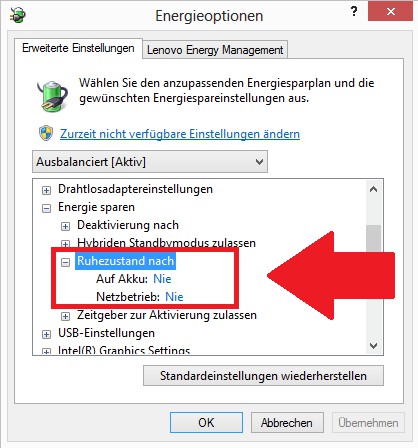 - Click on the blue Link "energy saving mode", and then click the Link "change Advanced power settings".