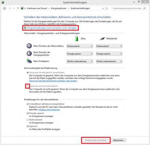 - Then set the selection to "password not required" and click save Changes. Then your PC will be locked to the Standby mode.