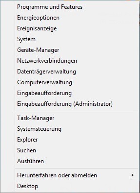 Practical is the start button right-click: Under Win 8.1 had to be made so that some useful functions visible, the Microsoft's hidden Windows 8 rather than intuitively accessible (see Screenshot):