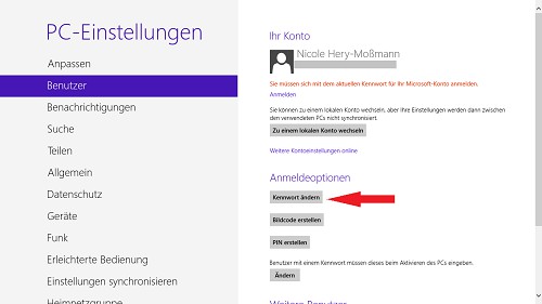 - Under "users" you will see your Account information. At the sign-in options, you will find the Button "change password". Here you can set the new password.