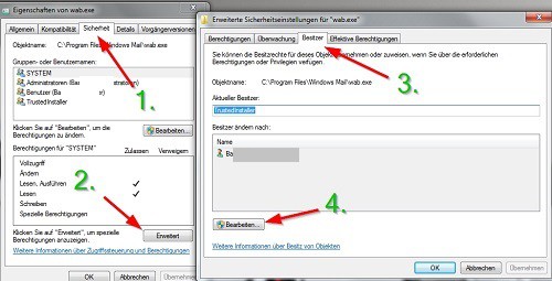 - Windows 8 and older: Go to the tab "owner" and click on the edit Button. Here you can select your account and click on the Button "Apply".