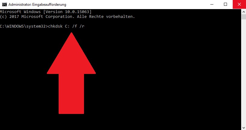 - Now enter the command "chkdsk X: /f /r" and confirm with the [Enter] button.