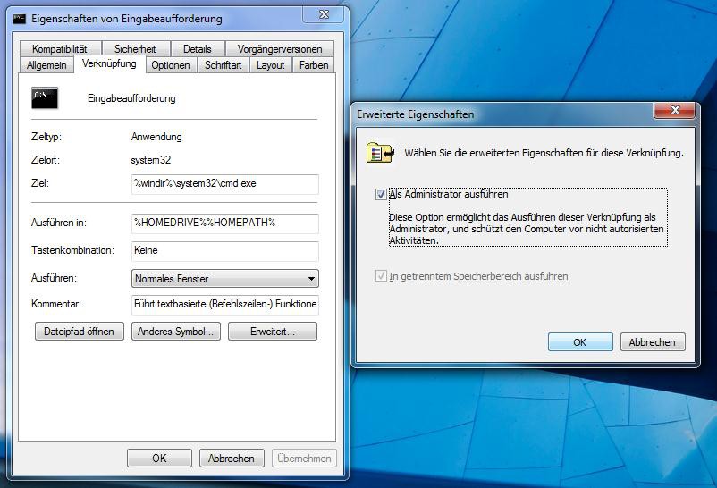 - The command start line permanently as an Administrator, look back to the "command prompt". Click on the link with the right mouse button and select "properties". Click on "Advanced" and select by check mark the Option "run As Administrator". With a click on "Confirm" to open the console is now always on as Admin.