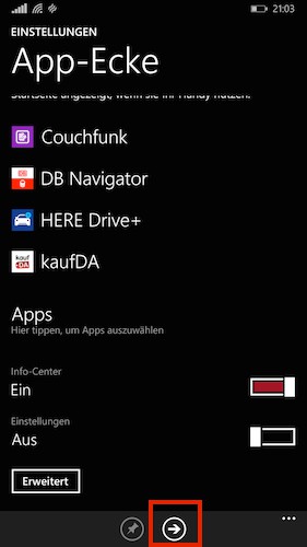 - You have selected the Apps, so you can enable under "Advanced", further settings. About whether tiles can be changed or if the camera button should be released.