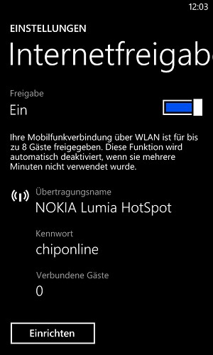 - Now your Hotspot can be used theoretically, because he was set up with default settings. To determine the Name and password of the hotspot itself, you can tap on "Set up".