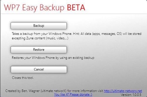 For the Backup with the "WP7 Easy Backup" need you, besides, Zune, Net-Framework 3.5 and the "Windows Phone Support Tool", the you here download can.