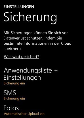 The fuse for the Windows Phone 8 is unfortunately a bit poor. A major shortcoming is that the settings and data of applications are stored. And also to Save the device settings does not always work smoothly. For more information on the topic of Windows Phone you can find here.