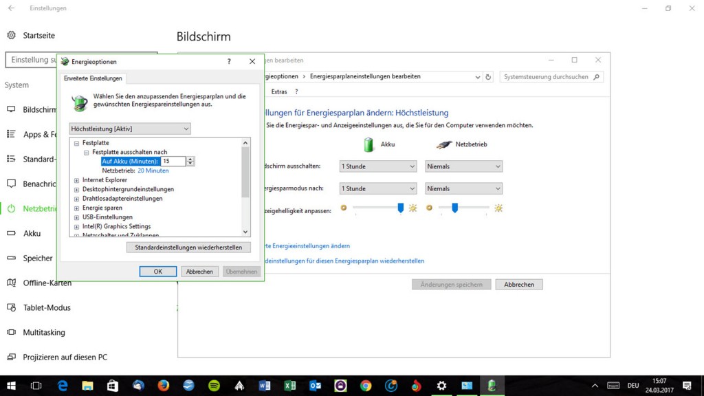 - On laptops and Tablets , the settings are separate for the mains - and battery operation enter.