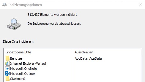 - In addition, it can help if you take it out of the "system control" in the "indexing options" once more under the magnifying glass and make sure that all relevant folders are present.